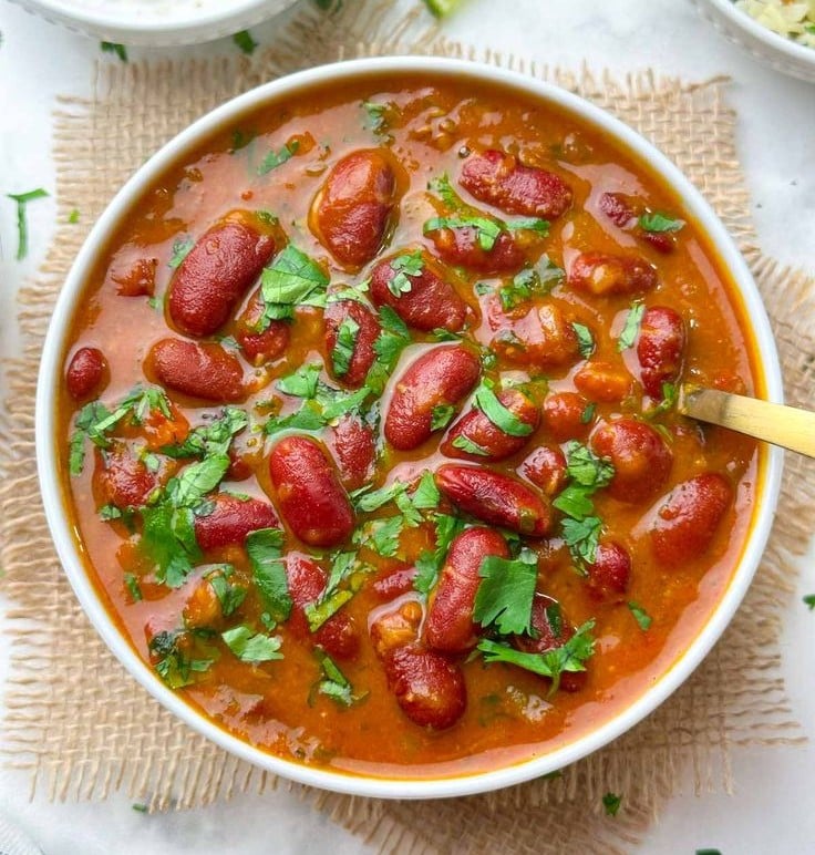 Món ăn này giàu đạm thực vật và sắt, rất tốt cho sức khỏe tim mạch. Rajma thường được dùng kèm với bánh mì Roti hoặc cơm nóng (thường gọi là Rajma Chawal). Để món ăn đạt hương vị chuẩn, người đầu bếp phải ngâm đậu qua đêm và sử dụng các loại gia vị Ấn Độ như bột ngò rí và Garam Masala để tạo độ nồng đặc trưng.