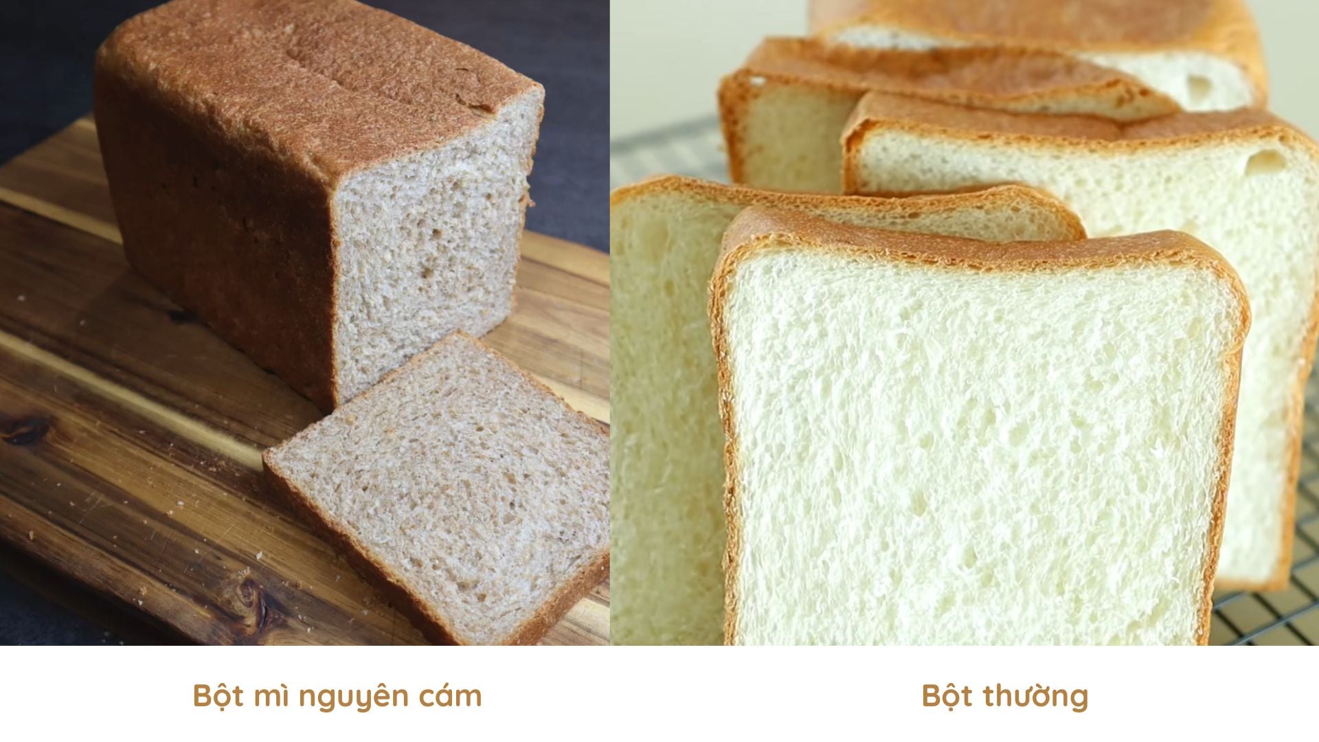 Bánh mì sandwich từ bột mì nguyên cám không chỉ khác về màu sắc mà còn khác biệt rõ rệt về giá trị dinh dưỡng, cấu trúc bột và tác động đến sức khỏe người dùng.