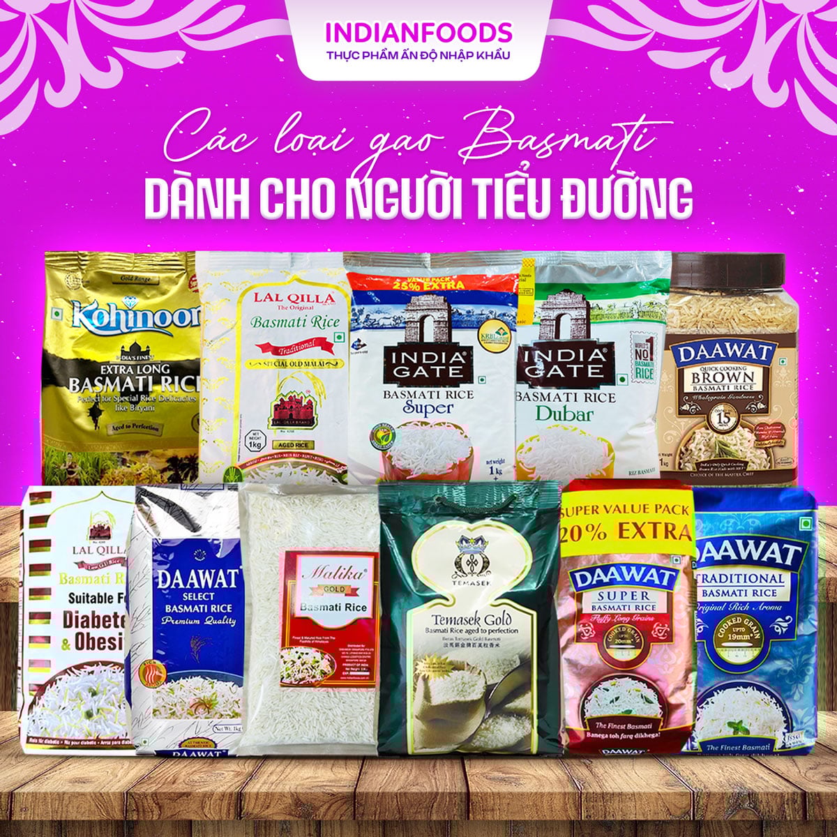Hiện nay, IndianFoods.com.vn, VOVE.com.vn và KHOCA.com.vn là ba đơn vị nhập khẩu và phân phối gạo Ấn Độ Basmati chính ngạch tại Việt Nam. Tại đây, bạn có thể tìm thấy đa dạng các dòng gạo cao cấp như Daawat Super, Lal Qilla Low GI, Malika Basmati Premium... cùng thông tin chi tiết về xuất xứ, giá bán và hướng dẫn nấu cơm đúng cách.